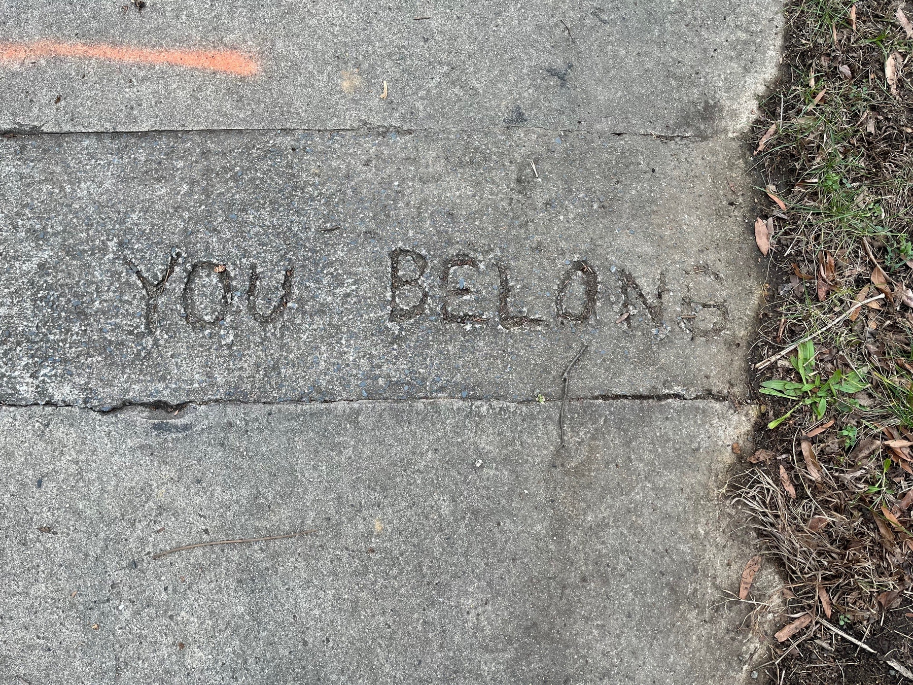 You Belong Jan 27, 2026 Captured this sidewalk inscription on a walk through the Old West Durham neighborhood Michael E Brown @brownstudy
