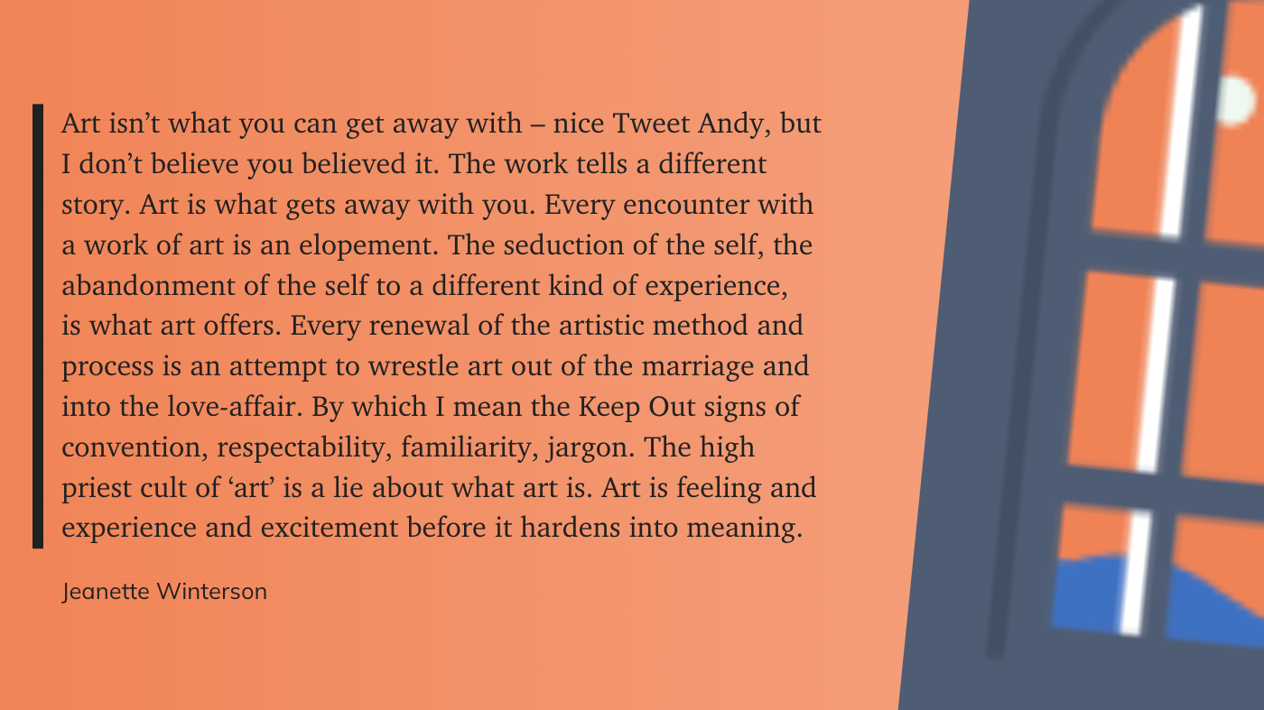 "Art is what gets away with you"